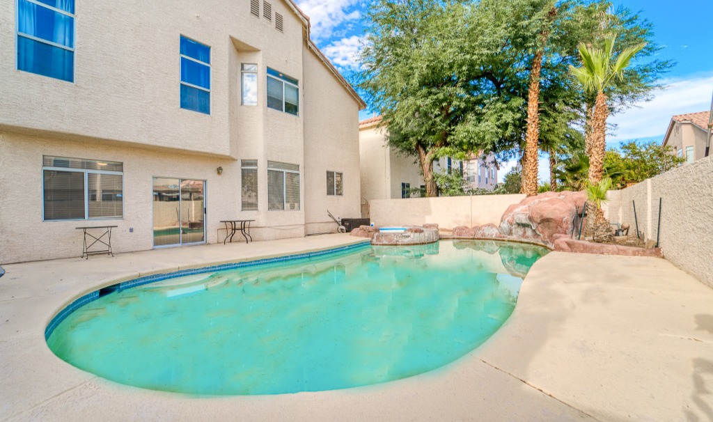 Fit with four bedrooms, three bathrooms, double door entry walk-in closet, a pool and spa in the private backyard, this open floor plan house has plenty of amenities. Close by is shopping, elementary and middle schools, parks, golf courses, and easy freeway access.