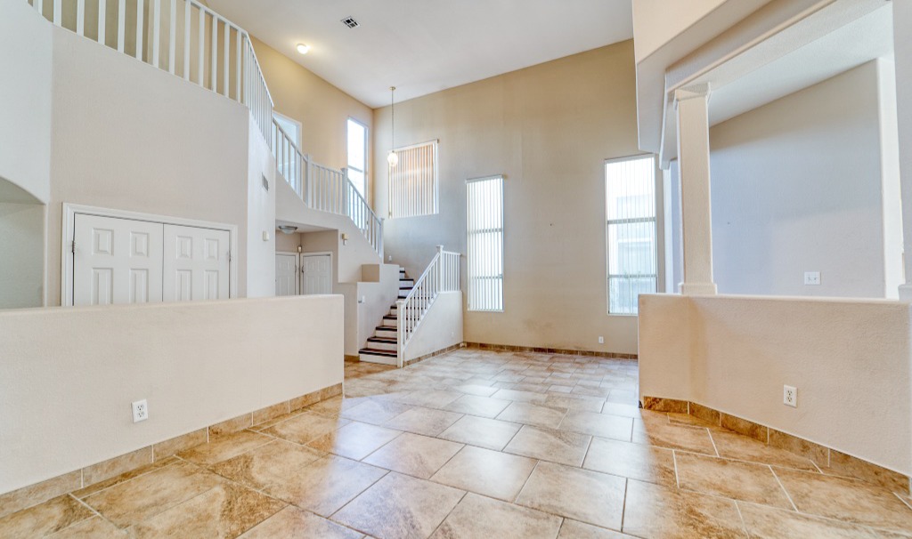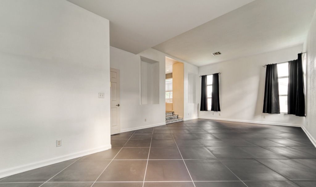 A high ceiling coupled with tall, elegant windows makes for brilliantly lit living and family rooms, breathing room-filling light to all corners of the house.